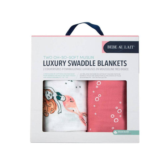 Muslin Swaddle Blanket Set Oh So Soft Mermaid + Bubbles