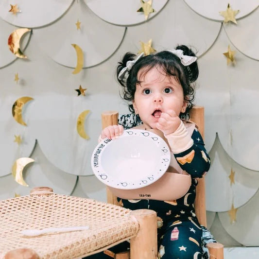 A weaning set which comes with a bib, bowl and teaspoon! Perfect for babies starting their weaning journey from 4 months +.