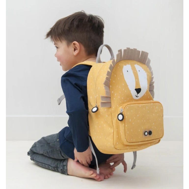 With this cute backpack your child is completely ready for any adventure or first trip to school! The backpack has adjustable and padded shoulder straps and a short handle at the top to easily hold and hang it everywhere you go. The chest strap prevents the shoulder straps from falling down. The backpack has a big compartment and a little front pocket, where you can nicely store a little snack or so. The main and front pocket have a zipper that allows children to easily open and close the backpack themselves. In order not to loose your traveling companion, a name tag is provided on the inside of the bag.