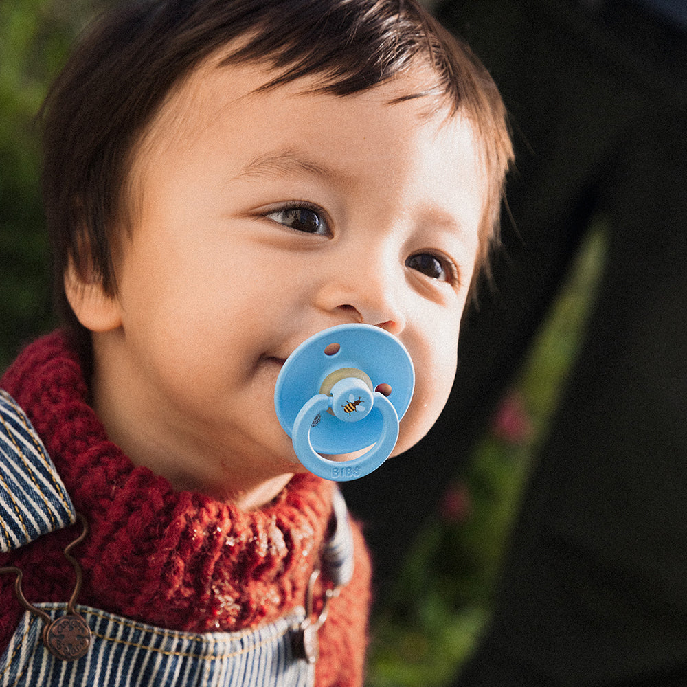BIBS COLOUR has been on the market for over 40 years – an all-time favourite! BIBS COLOUR is the preferred pacifier for many children because of the cherry shaped nipple. The shape of both shield and nipple is like a mother’s breast and is the optimal support for a natural sucking reflex and for breastfeeding.