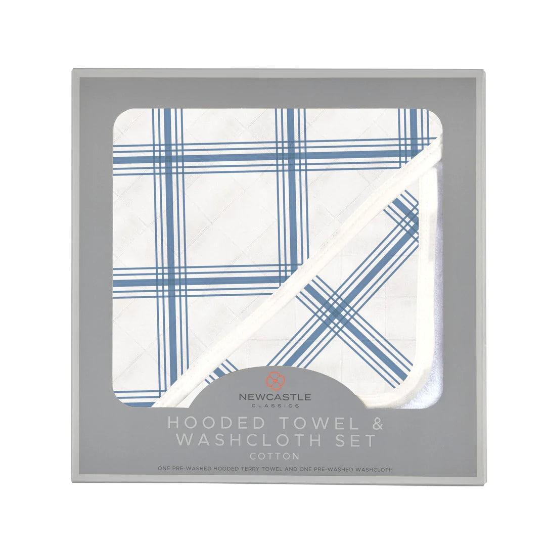 Blue Buffalo Check Plaid Hooded Towel and Washcloth Set