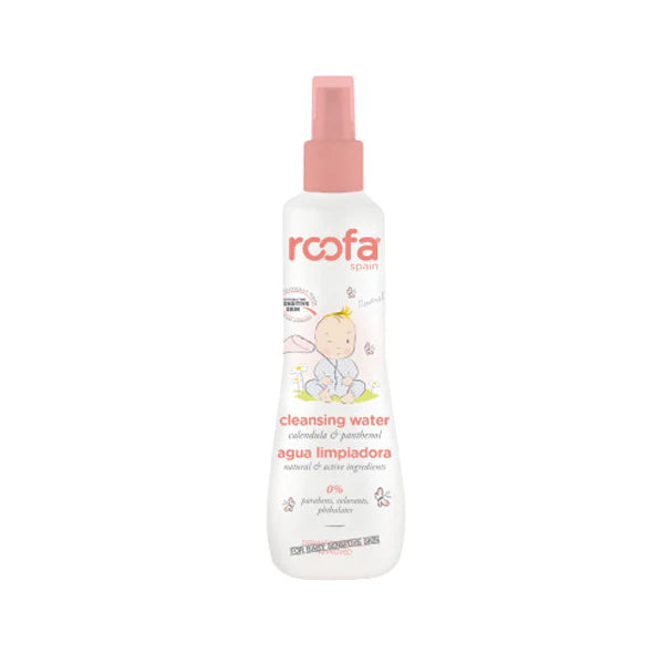 The Roofa cleansing water, cleanses the skin in depth, keeping it elastic and hydrated thanks to the action of two active ingredients: panthenol and calendula. It provides a feeling of freshness and comfort, without dryness or greasiness. As it is a water-based product, micellar water is respectful of delicate skin, and provides a soothing effect. At the same time, as it does not contain alcohol or parabens, it is perfect for treating skins intolerant to these substances. It contains a very low percentage of perfume, which also does not contains allergens, avoiding the possibility of skin irritation in sensitive skins.
