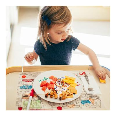 These Prince Lionheart Placemats are dishwasher-safe, food-grade silicone placemat with screen printed artwork for kids to color again and again.