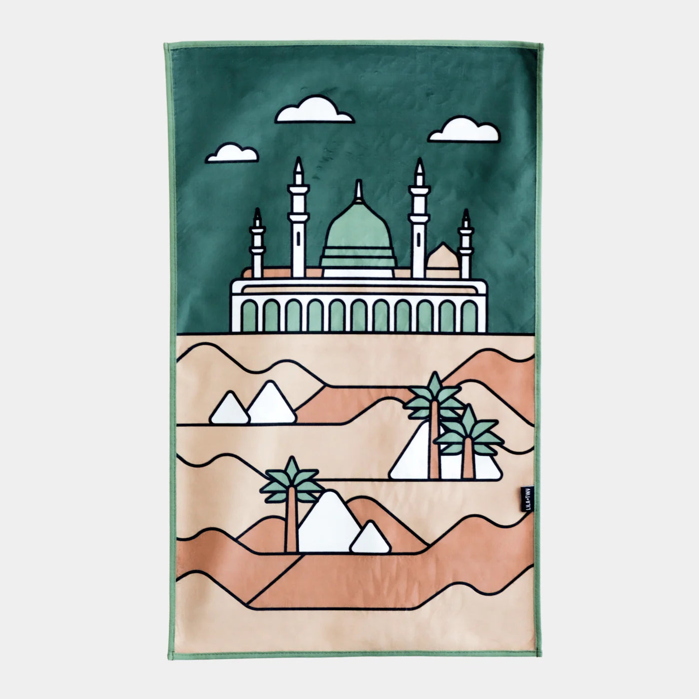 A beautifully designed prayer mat based on the desert theme to encourage young children to pray. Muted tones have been used to create a soft feel visually, a perfect gift for any child.