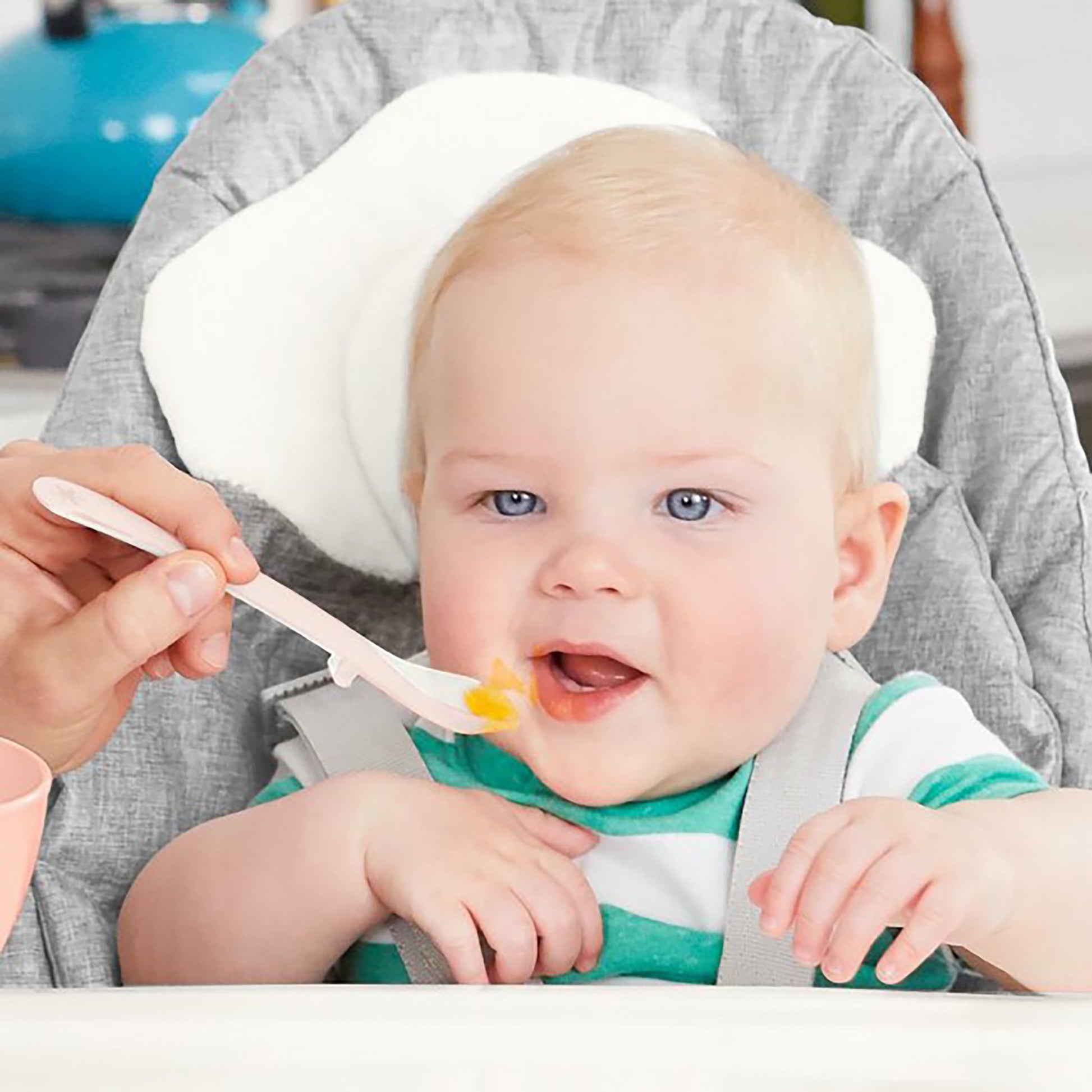 Feeding baby while out and about is easy with this travel bowl and spoon set. The ergonomic shape lets parents scoop in a single motion for streamlined feeding. The all-in-one set also includes a spill-resistant lid with a spot to store the spoon.