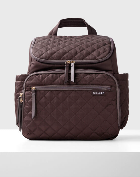 Our lightweight, quilted diaper backpack offers hands-free ease and special packing cubes for baby's gear. The spacious interior fits everything from snacks to spare outfits and the extra wide opening makes it easy to pack and grab essentials in a pinch.
