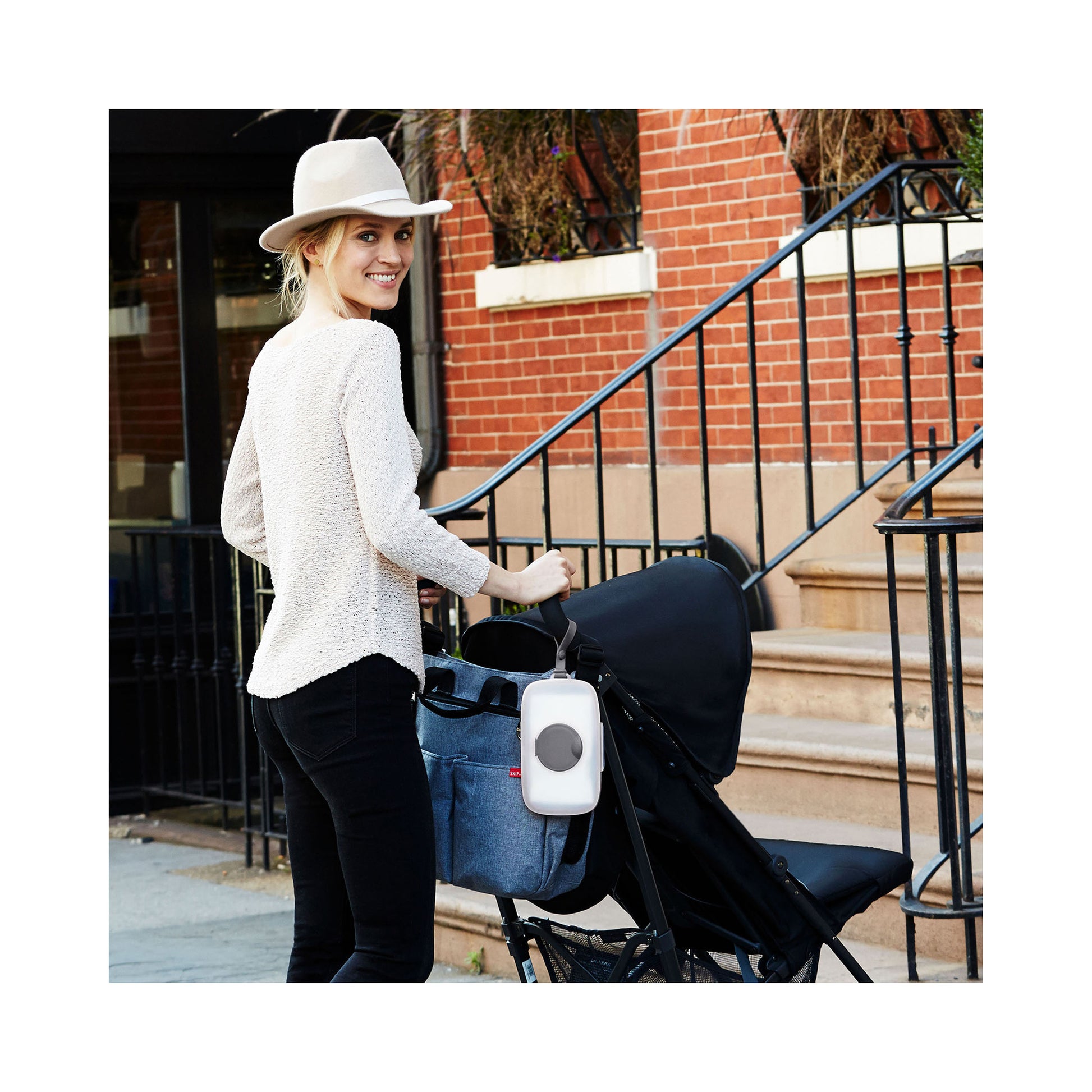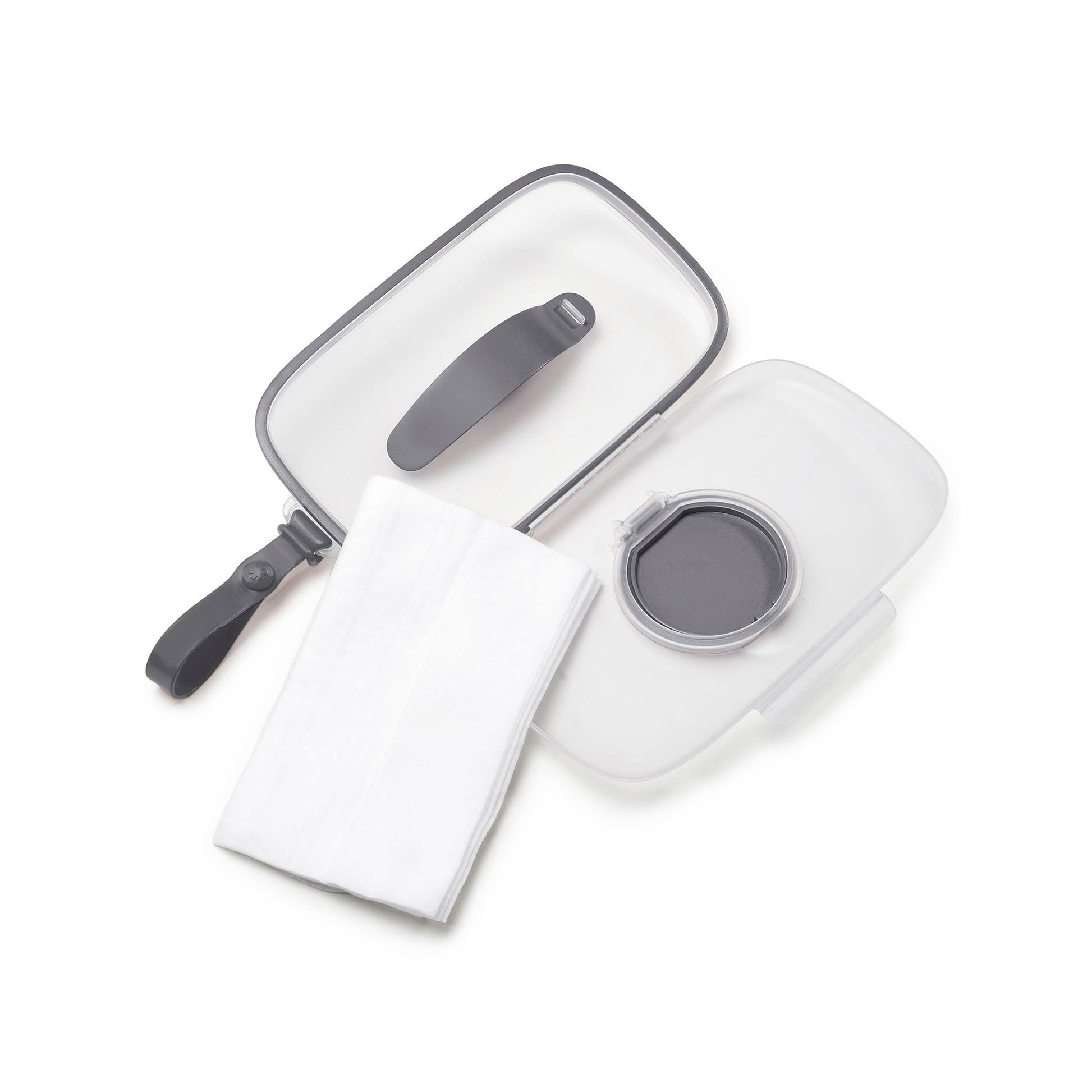 With a secure, wide opening and a moisture-stay seal, our baby wipes case is the answer to fresh wipes every time. Whether you drop it in your diaper bag or use the built-in strap to hang it on your stroller, it's the perfect, go-anywhere solution.