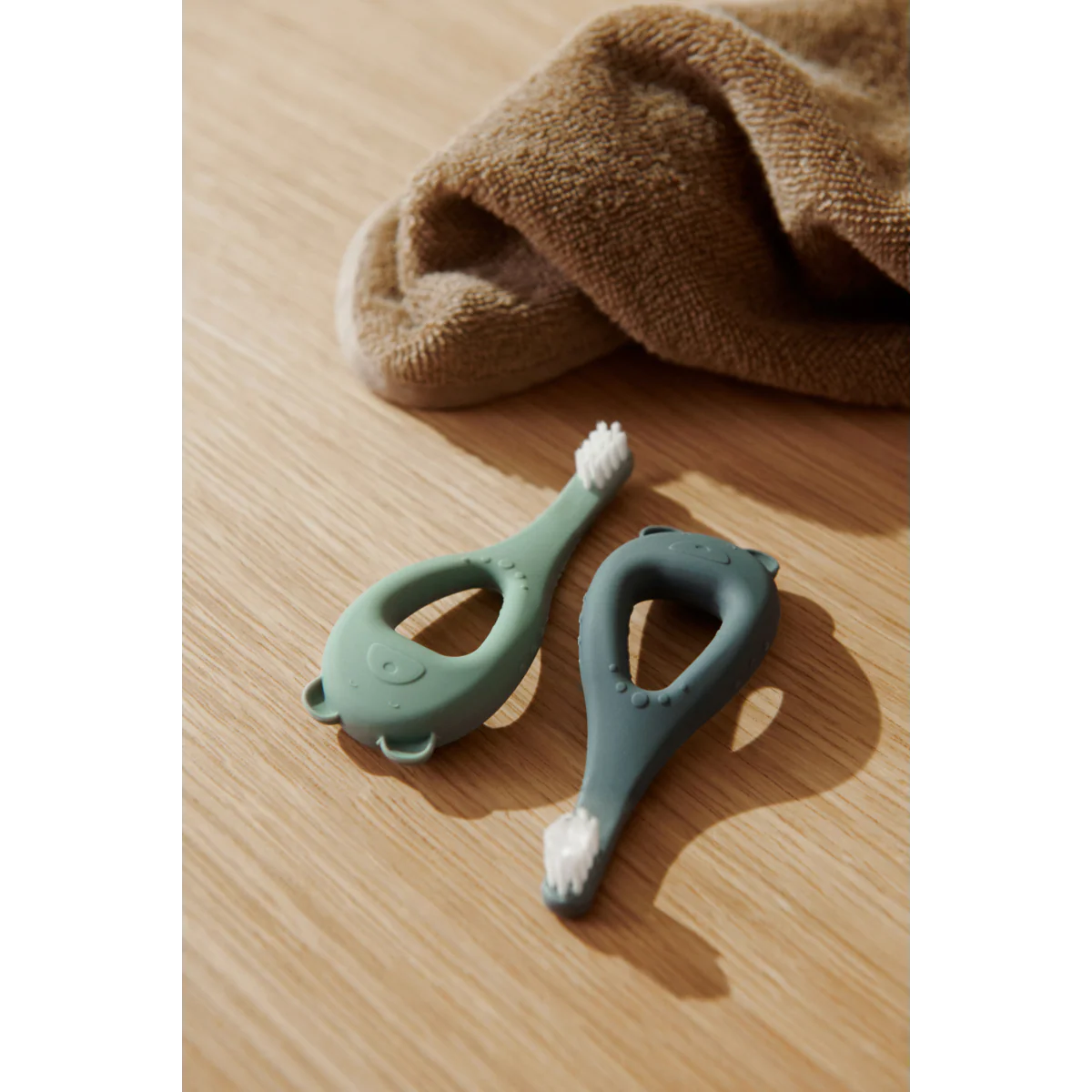 Transform tooth brushing into a playful experience with our soft silicone and nylon JANELLE toothbrush. Featuring easy-to-grasp handles, stimulating textures for an enjoyable brushing session, and playful animal details for extra fun.