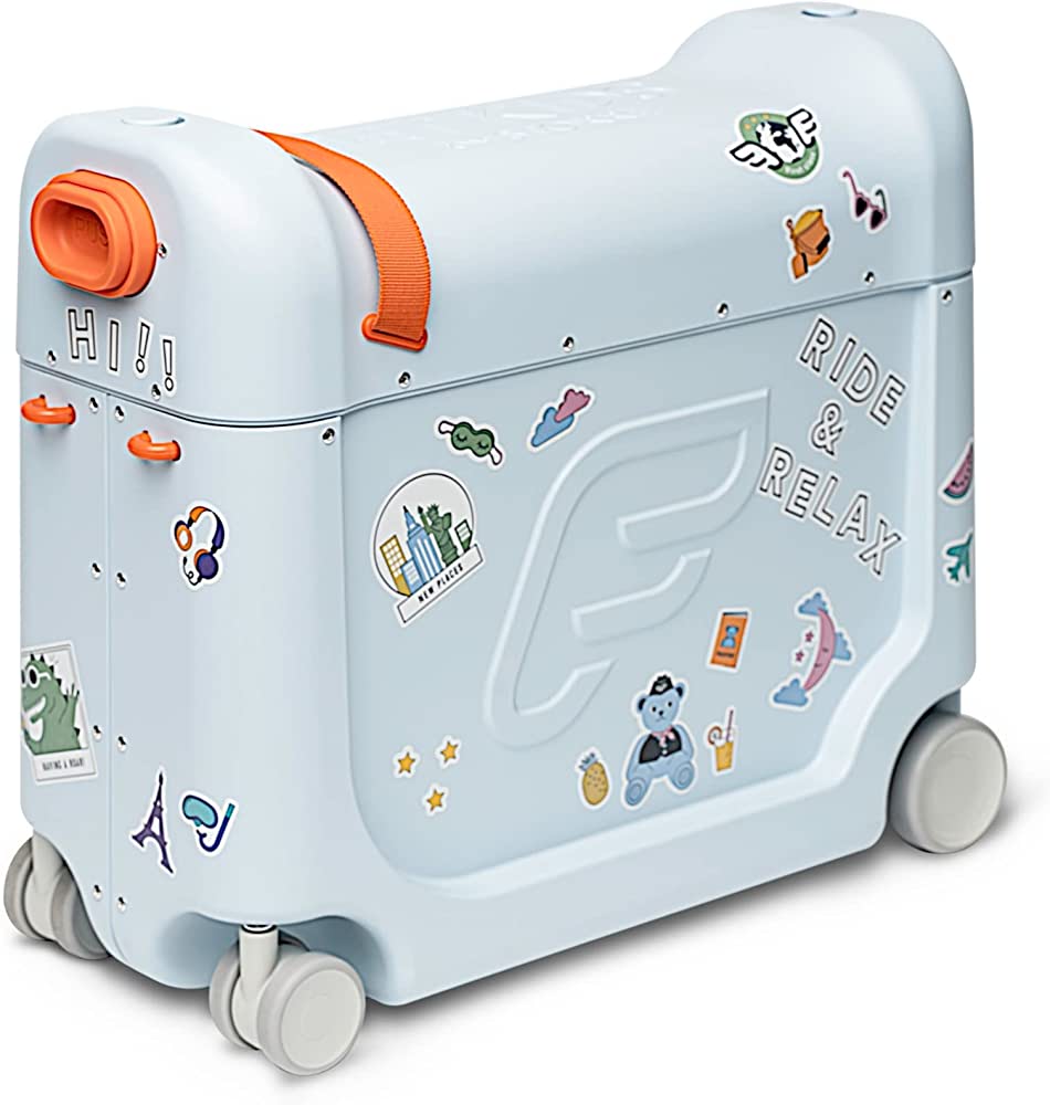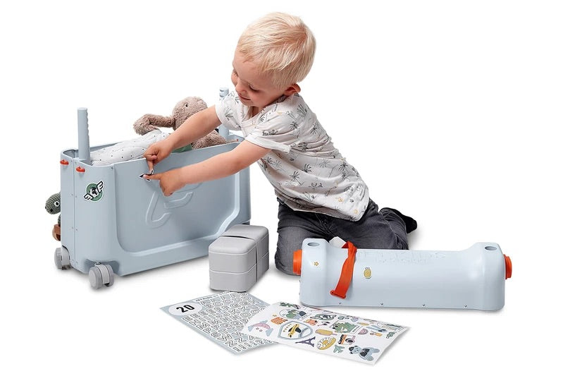 The BedBox™ is the world's only premium, ride-on suitcase for children with an in-flight bed or leg-rest feature. This travel essential combines Scandinavian style and aviation inspired design with practical features for the entire trip and allows your child to rest comfortably or sleep during long and short-haul flights. Fun and functional with ample storage, the BedBox™ holds your child’s must-haves. Once packed, let your little one ride it (or pull it) through the airport terminal for stress-free travel. Once the seat belt sign is off, transform the BedBox™ from a suitcase into a bed in 5 simple steps. The ride-on suitcase is for children 3-7 years old, and the bed feature is best suited for children over 2 years old. Officially approved by many airlines.