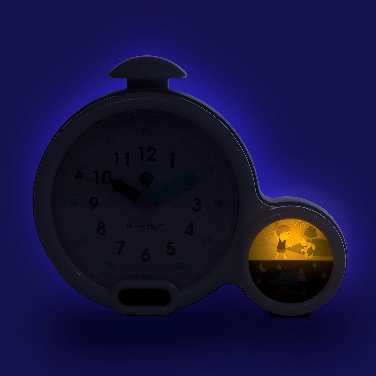 The alarm function is perfectly designed for children with a large mushroom button with snooze function and 3 progressive alarms.