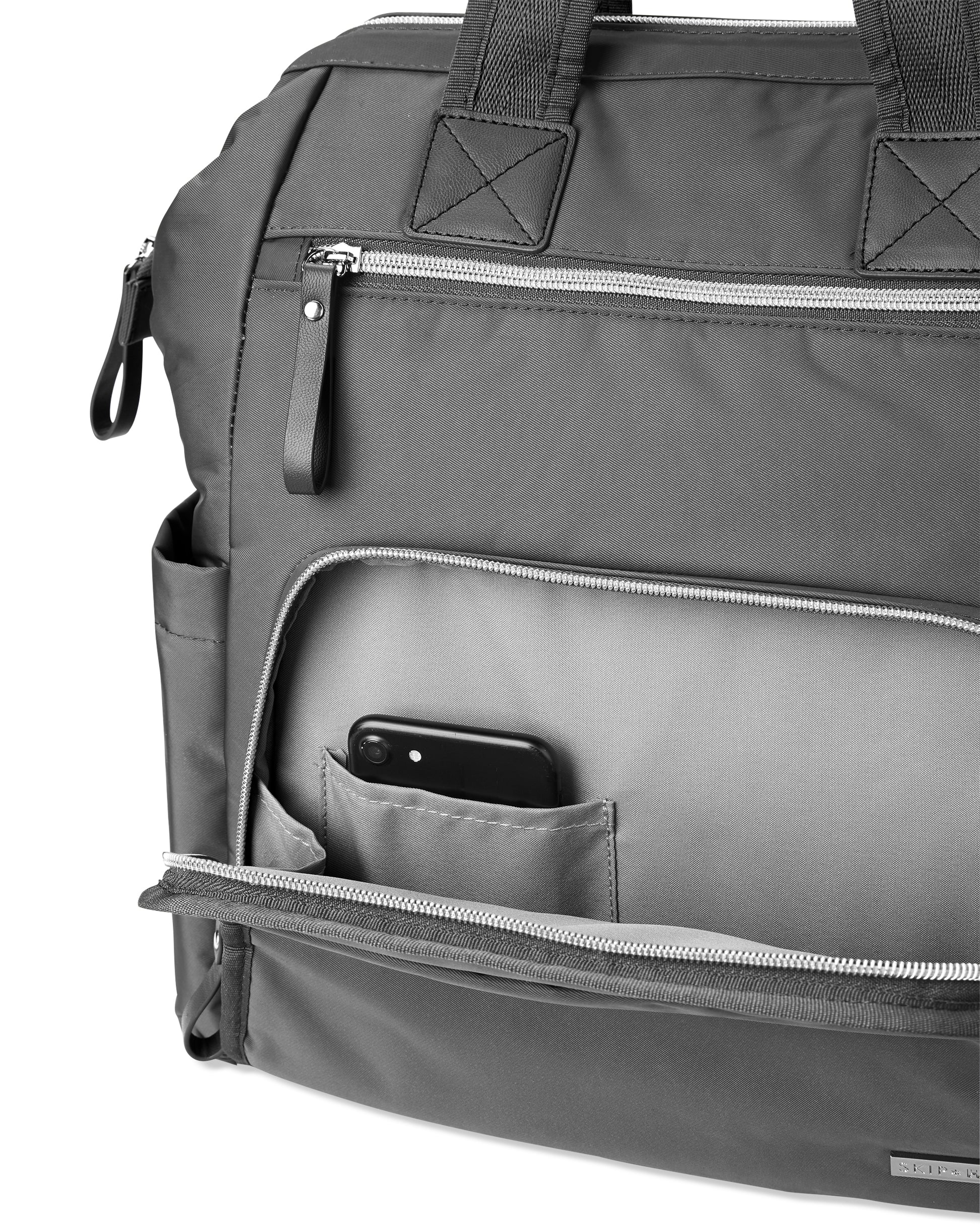 Who has time to hunt through your jam-packed bag for diapers, snacks and other necessities? Not the busy moms we know. Our Mainframe Wide Open Diaper Backpack makes it easy to access everything that's packed inside thanks to a structured frame that opens wide—and stays put—for a clear view. An innovative combination of soft fabric and sleek structure, the sporty, lightweight design features a large main compartment with a secure zip closure, plus lots of pockets for essentials like your phone and water bottles. Easy-grab double top handles and adjustable backpack straps make this user-friendly look the ultimate in hands-free ease.