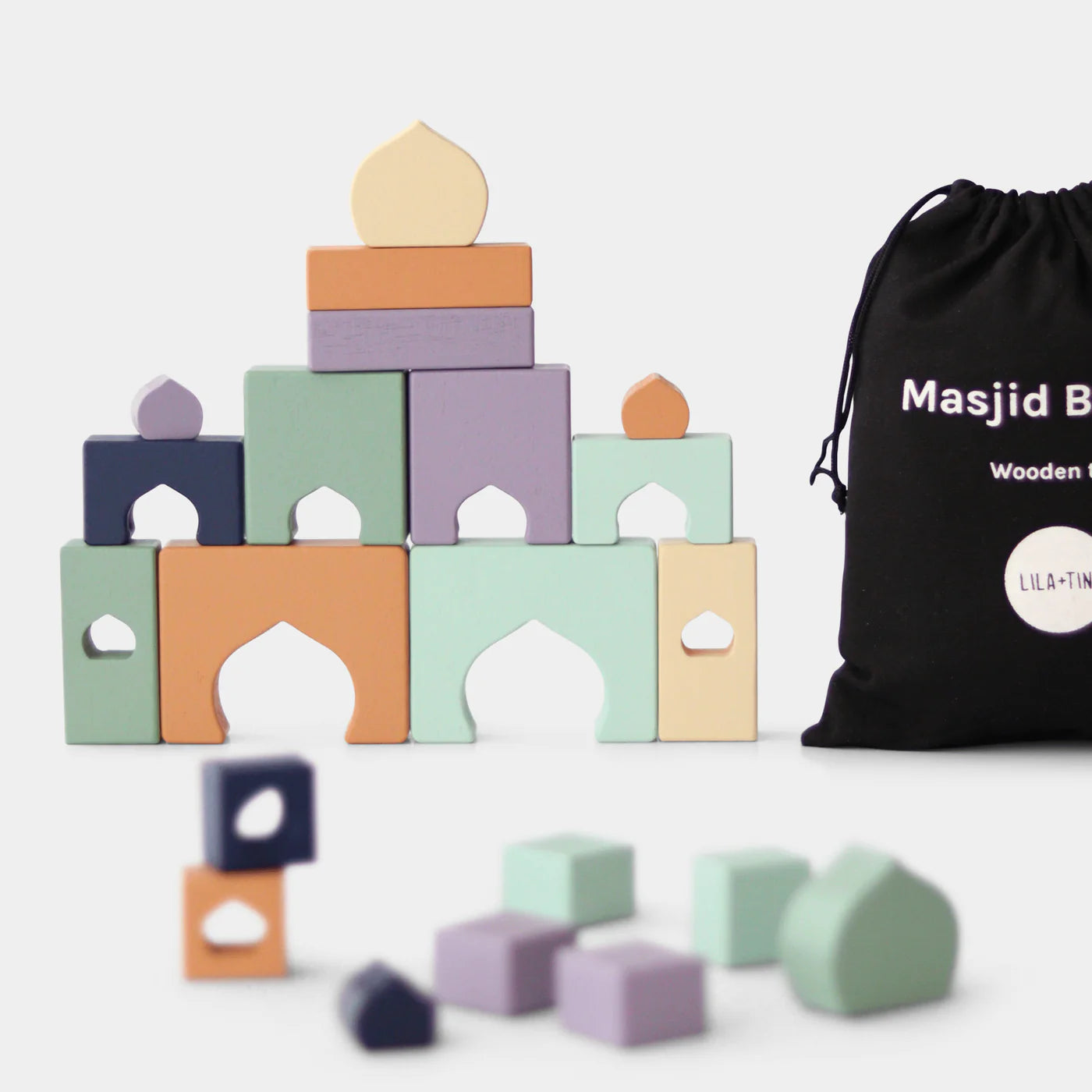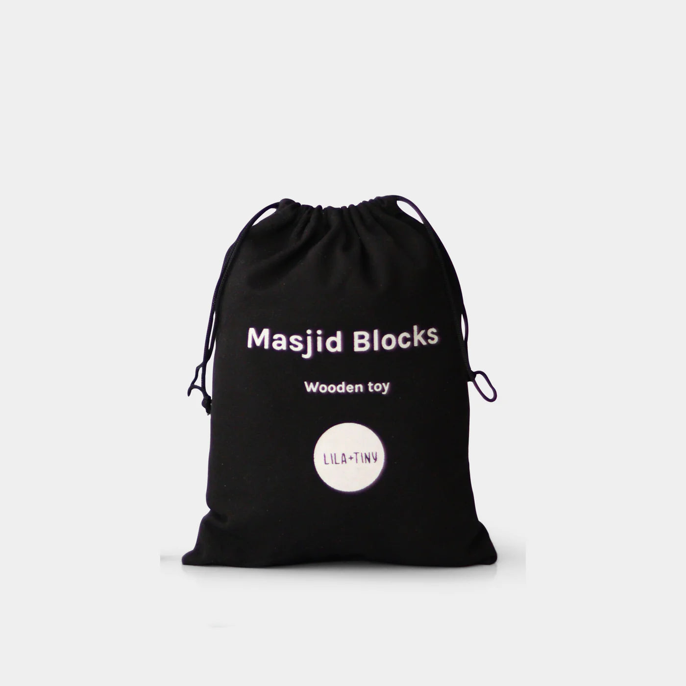 Painted in neutral muted tones, the Masjid Blocks comes with a drawstring bag for those tidy up times!