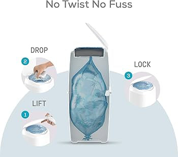 - No Fuss One-handed operation- Simple to use, with no difficult twisting, even using one hand easily push the nappy through the clamp door.