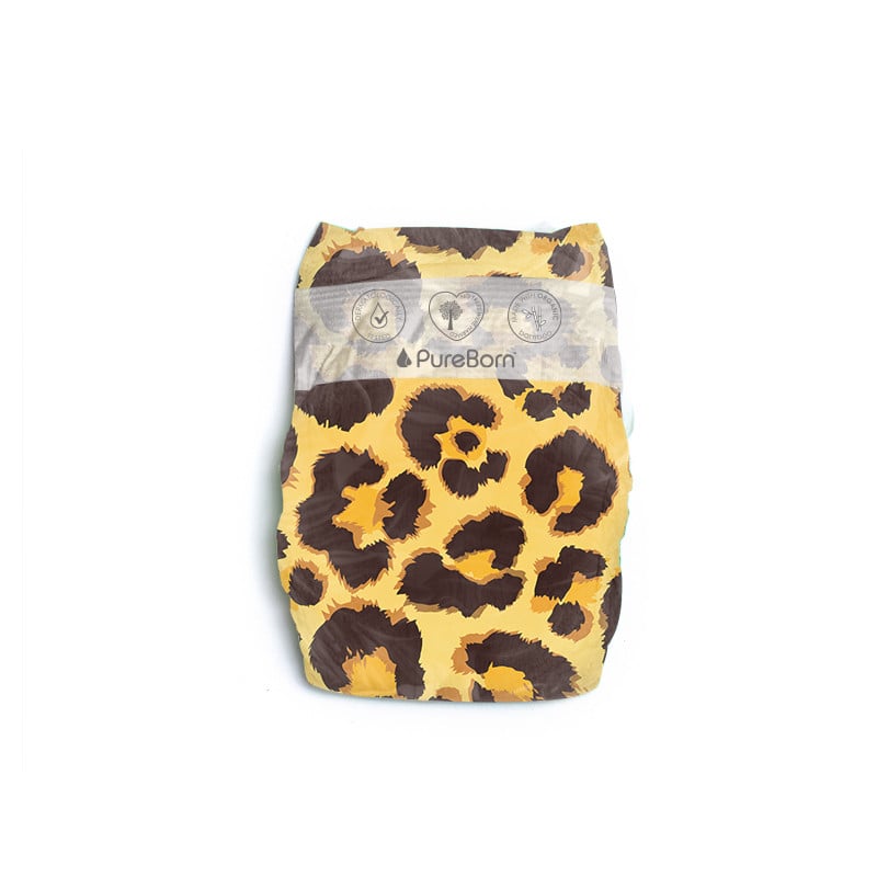 Organic Diapers Size 1 - Newborn up to 5kg - 34 Diapers - Leopard Print