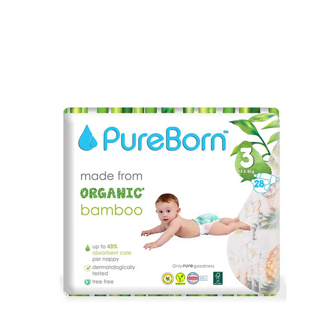Organic and eco-friendly PureBorn nappies are created from soft and absorbent bamboo materials. Dermatologically tested and never tested on animals, our nappies are gentle on your baby's skin while also being kind to the environment. The design allows for maximum comfort and free movement, making them perfect for busy days and peaceful nights. They are also Vegan, Cruelty-Free, and certified by V-label and PETA. Plus, they are free from heavy metals, allergens, and pesticides, ensuring the safety and well-being of your child. Try them now and see the difference for yourself!