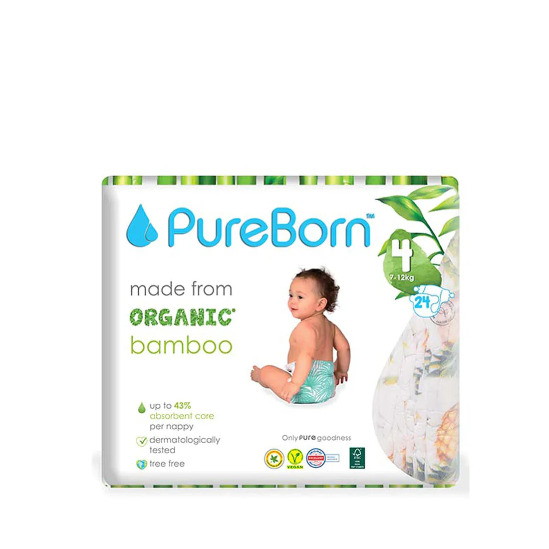 Organic and eco-friendly PureBorn nappies are created from soft and absorbent bamboo materials. Dermatologically tested and never tested on animals, our nappies are gentle on your baby's skin while also being kind to the environment. The design allows for maximum comfort and free movement, making them perfect for busy days and peaceful nights. They are also Vegan, Cruelty-Free, and certified by V-label and PETA. Plus, they are free from heavy metals, allergens, and pesticides, ensuring the safety and well-being of your child. Try them now and see the difference for yourself!