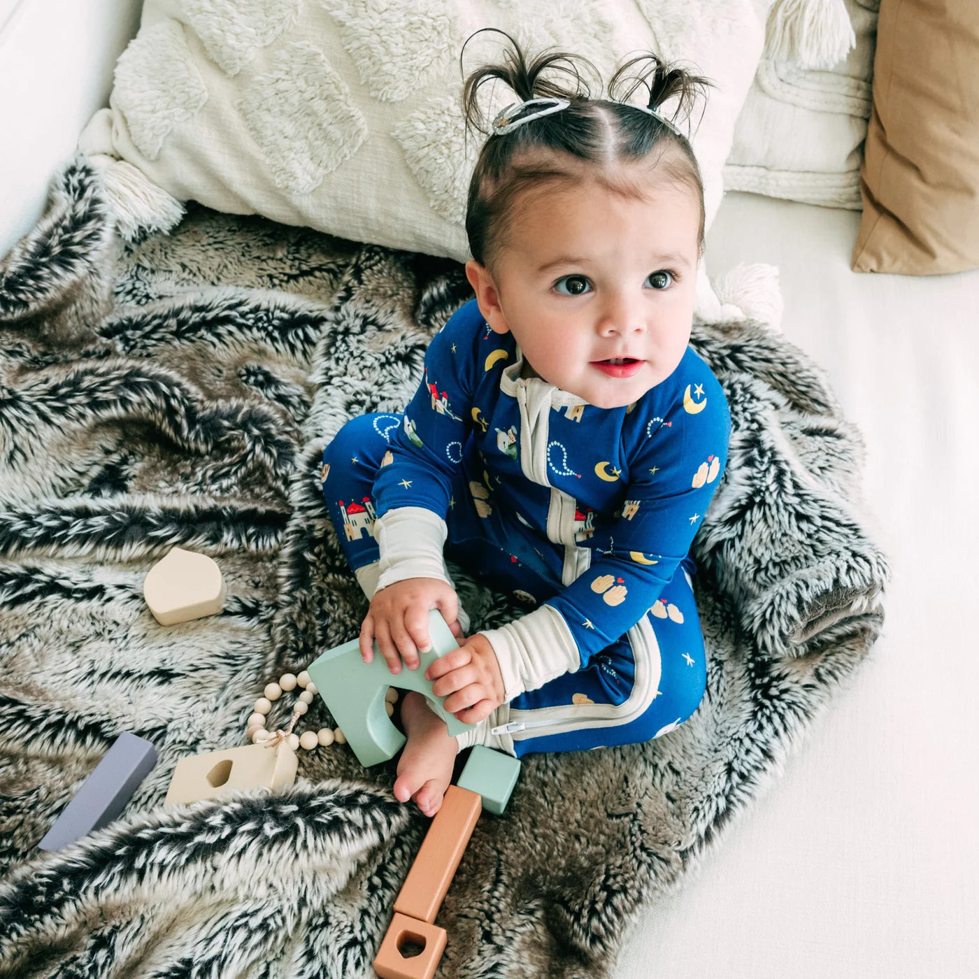Introducing our Ramadan Collection of buttery soft and stretchy rompers! Designed with tini and mama in mind, this romper provides comfort and functionality in a stylish, Ramadanesque print . Bamboo fabric is thermo-regulating, buttery soft and ultra-light; your child will never want to wear anything else to sleep. Double zipper make diaper changes a breeze and fold-over feet and mittens transform this zippe from a romper to a footie “ all in one!