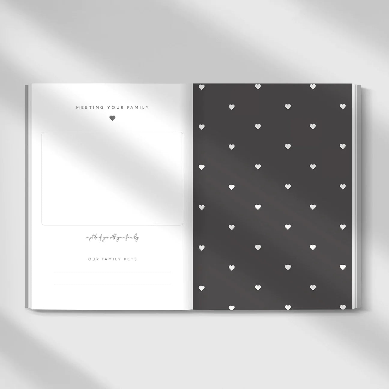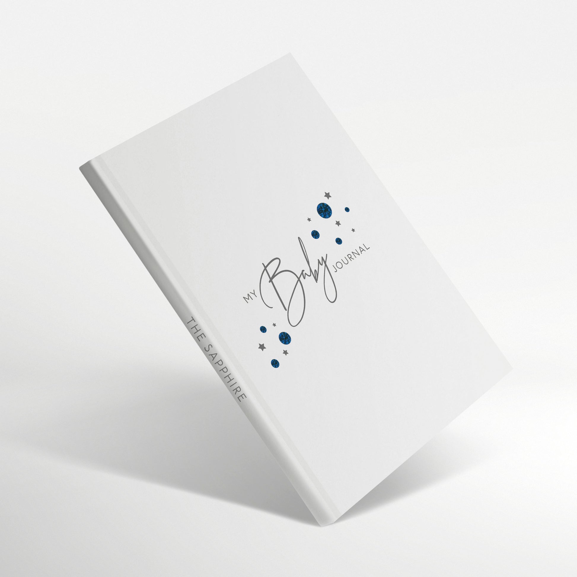 Hard Cover 56 Page Baby Journal for baby’s first year in a gift box.