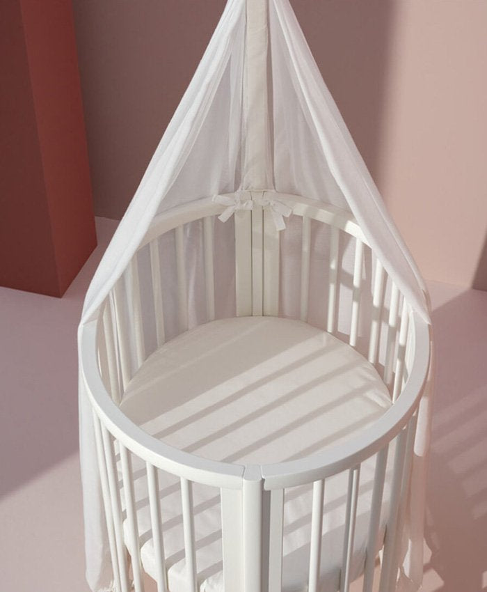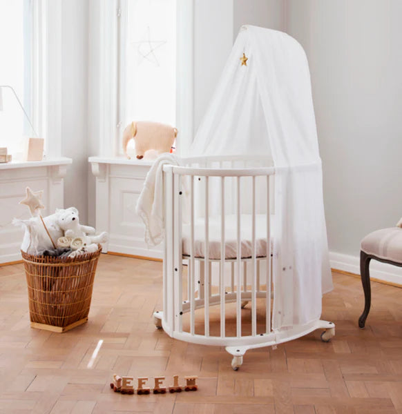 The Stokke® Sleepi™ Mini is the ideal first bed for your newborn. Creating a nest-like environment, it helps baby feel snug and secure. Soft oval design cocoons your baby offering comfort and familiarity for restful sleep and the sweetest of dreams. The drape rod and canopy make it a truly elegant addition to any nursery. Lockable swivel wheels can be used to rock your baby gently to sleep and makes your crib easy to move from room to room. At only 67 cm / 26,4 in inches wide, it’s amazingly space efficient, making it ideal for petite nurseries. The Stokke® Sleepi™ concept has been developed with sound sleep and safety in mind. It is available with a new firm and breathable Sleepi™ mattress which exceeds the highest safety standards. Accessorize with the breathable mesh liner and high-quality textiles. Stokke® Sleepi™ is FSC®-certified using responsibly sourced wood. FSC is a sustainable forest management solution. With this Stokke® Sleepi™ we help take care of the world’s forests.