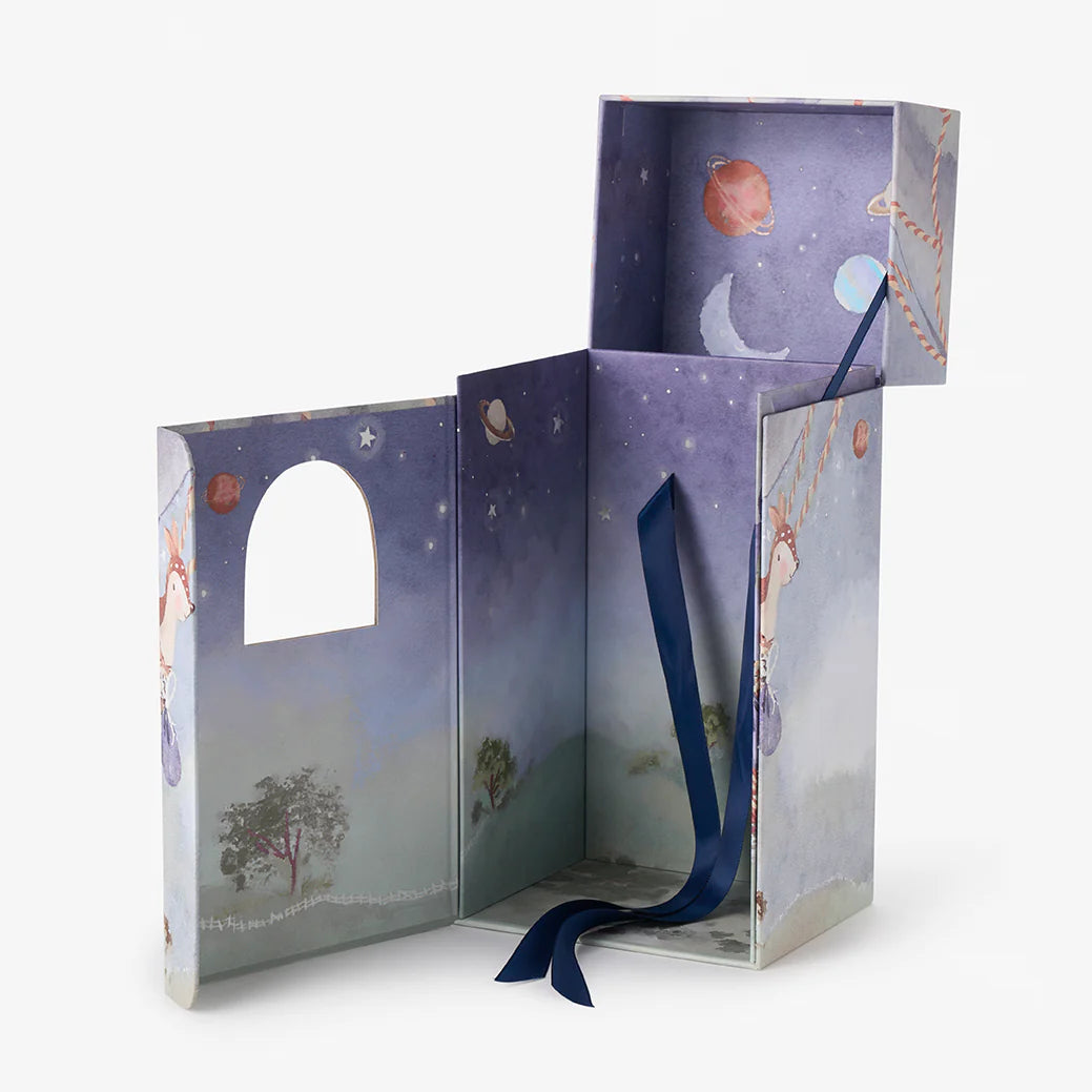 - Includes hand illustrated, interactive gift box