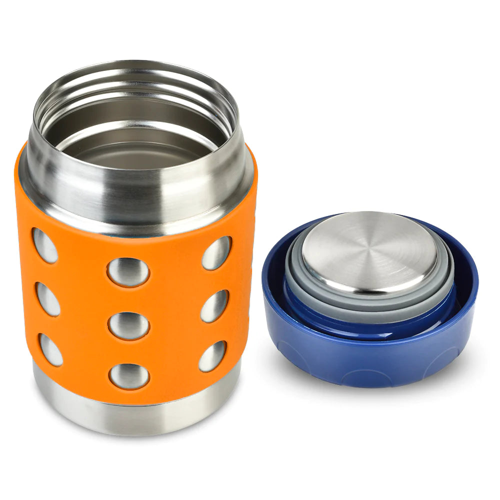 Keep 1 1/2 cups of your favorite soup, chili, or pasta hot for hours in this triple insulated 12 oz. Thermal. A bright silicone sleeve adds a splash of color and its all-stainless interior means no plastic touches your food. Dishwasher safe.