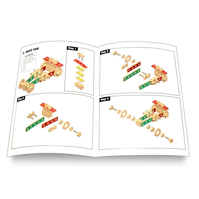 The Wooden Project Workbench offers children a robust platform for creative play, featuring a sturdy design made from high-quality wood. This set includes five wooden tools and 55 construction pieces, fostering fine motor skills and problem-solving through hands-on experience. Designed for children aged three and older, it encourages imaginative play without screens.